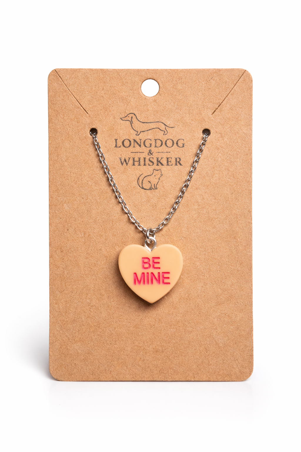 A little love note you can wear. Our Be Mine Heart Necklace. Features a candy-style heart charm with bold embossed “BE MINE” lettering, hanging on a silver-tone chain for an easy, everyday pop.