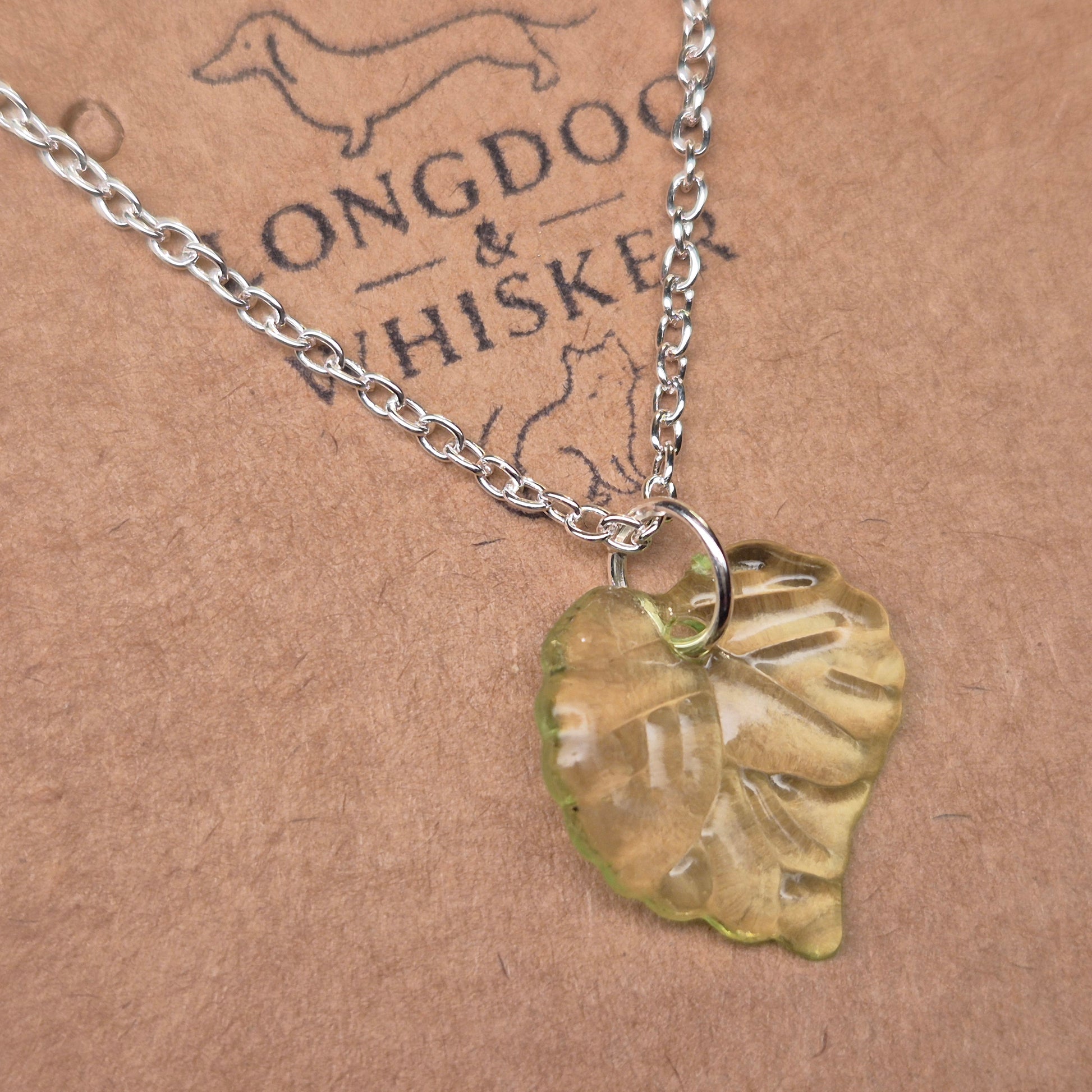 Bring a little nature to your everyday look with this green leaf necklace on a silver-tone chain. The simple leaf pendant adds a soft pop of colour, perfect for anyone who loves plants, woodland walks or just a touch of earthy style in their jewellery.